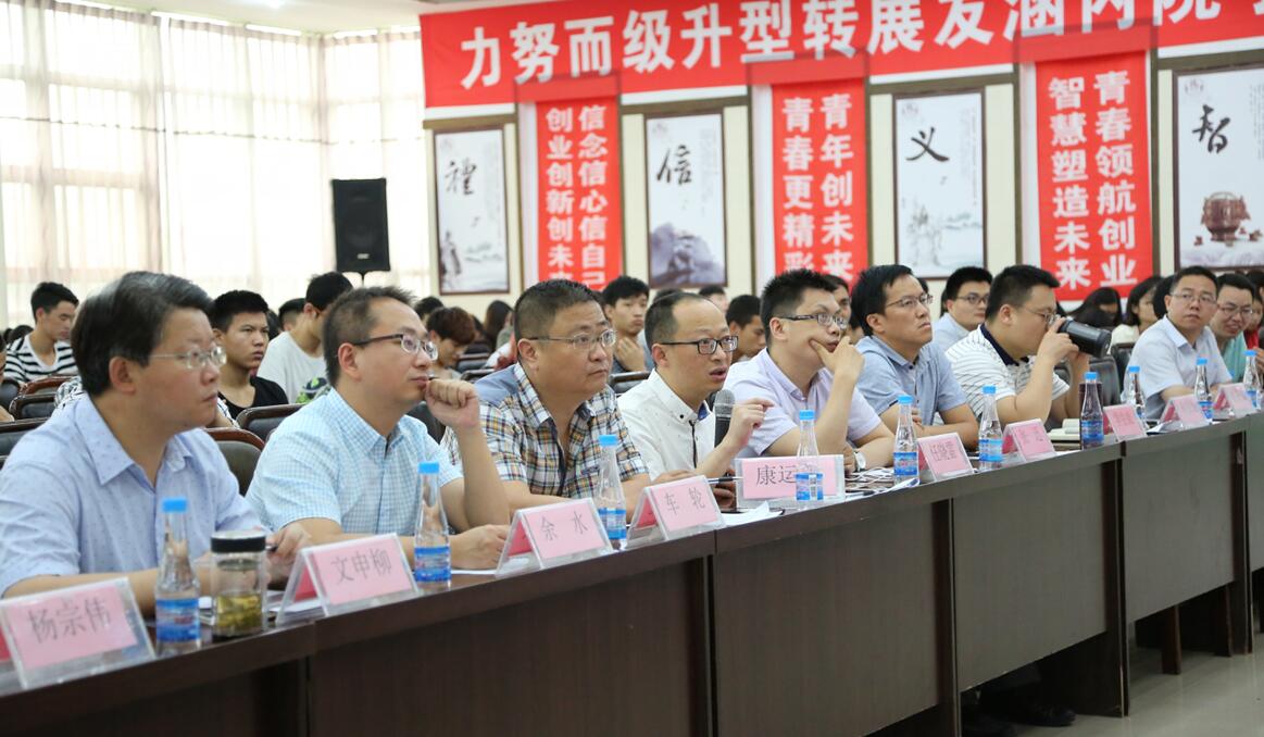 为了引导大学生树立正确的就业观和创业观,带动和影响更多大学生投身自主创业实践,近日,我院在行政楼五楼举行了第三届“互联网+”创新创业大赛决赛。出席大赛的嘉宾有泸州市就业局副局长余水,学院杨宗伟院长,文申柳副院长,学院相关部门和各系部领导及指导老师。比赛评委均来自泸州市创业指导专家团队,分别是泸州市就业局创业科科长车轮;泸州老窖电子商务股份有限公司总经理、泸州市电商协会常务副会长、泸州市企业家联合会特聘专家组成员康运策;四川黑马数码科技有限公司、泸州市智慧城市和信息产业众创协会常务副会长任晓雷;腾讯大成网川南运营中心总经理张迅。泸州市就业局副局长余水和学院文申柳副院长分别为大赛致辞。