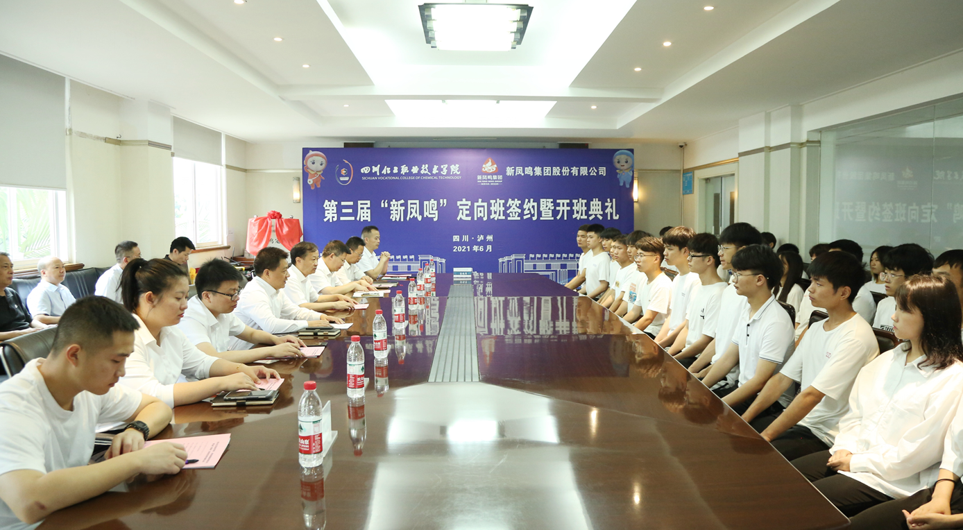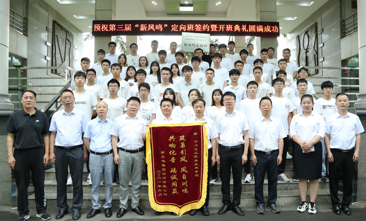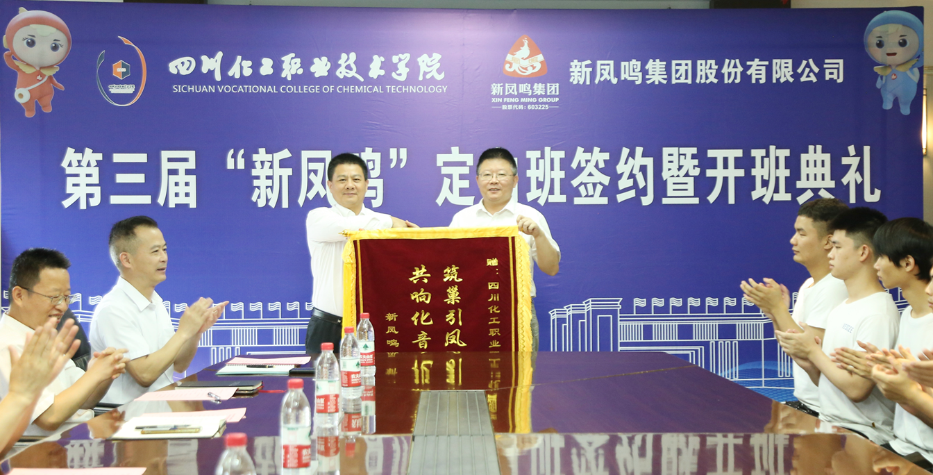 开班仪式上,蒲开伦副院长与宋建红总监共同签订了第三届《四川化院——新凤鸣定向班合作协议书》;刘志勇书记与宋建红总监共同为“新凤鸣”定向班揭牌;宋建红总监代表公司向文申柳院长赠送了写着“筑巢引凤 凤自川鸣 共响化音 竭诚同赢”的锦旗。