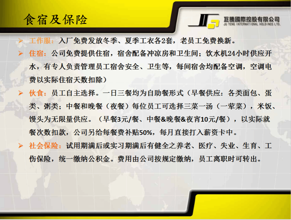 公司视员工个人工作表现,进行不定期调薪,缴纳养老、医疗、失业、生育、工伤保险及公积金