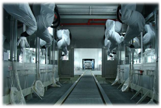 生产车间主要设备:瑞士苏泰克激光拼焊生产线、德国KUKA自动化生产线、瑞士■ABB全自动机器人柔性生产线、法国SAMES静电悬杯、日本YASKAWA壁挂机器人、AGV举升系统。
