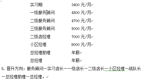 6.晋级方向:实习销售精英—销售精英—销售主管—销售总监。