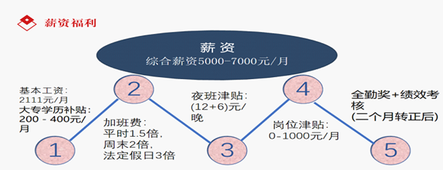 基本薪资+学习补助+加班费+岗位津贴+考核津贴+全勤奖+夜班补