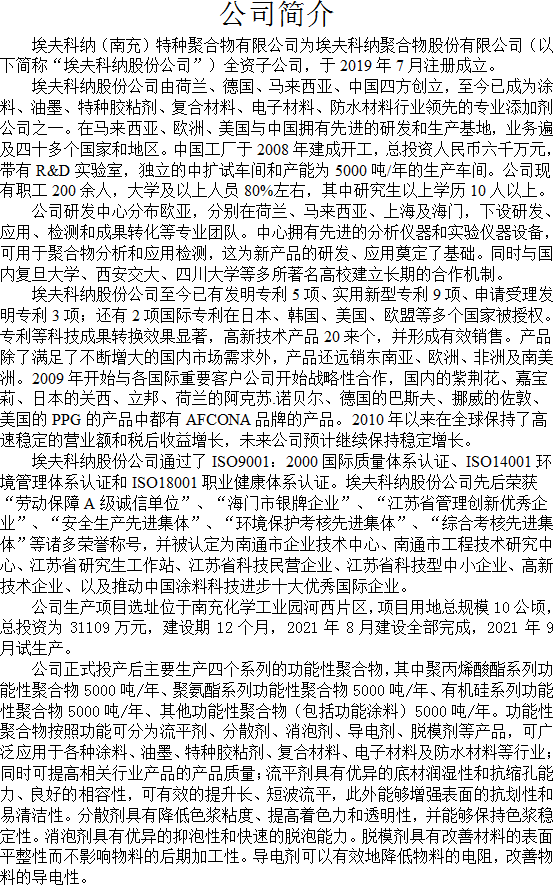 埃夫科纳(南充)特种聚合物有限公司