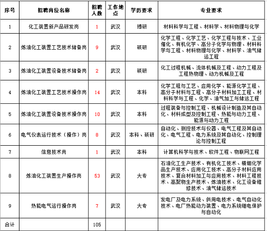 1.主要需求专业(具体专业及要求见中国石化人才招聘网站)