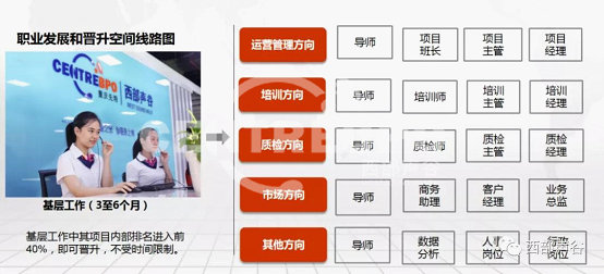 多通道晋升机制,拓宽职业发展通道,团队管理、质量管理、培训管理、运营助理类、职能专员类多维度可供选择。竞聘条件透明,具备 3-6 个月的一线经验、业绩在团队中上水平,可申请参加公司每月 1 次的内部竞聘。