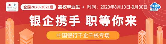 8月10日,教育部“24365校园招聘服务”平台联合中国银行及其业务合作单位,面向2020届和2021届高校毕业生推出“银企携手 职等你来”千企千校网上招聘会。